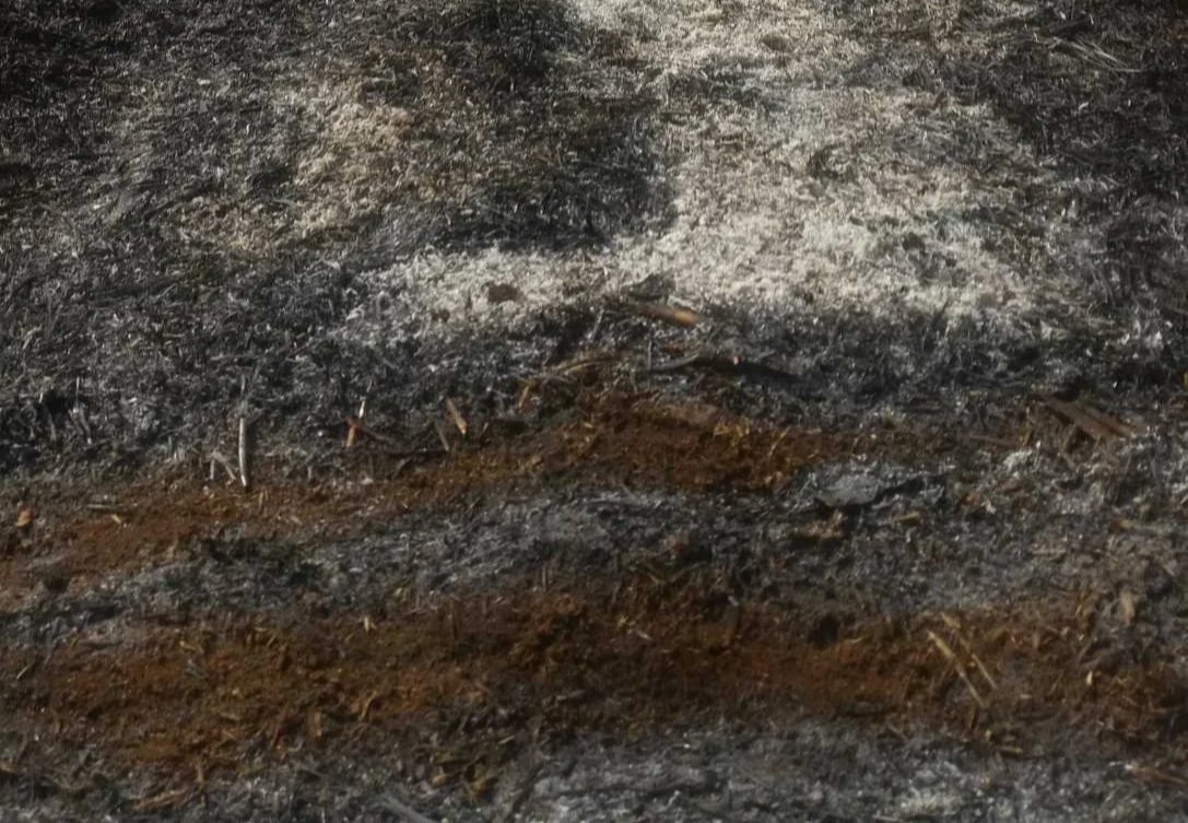 Windrow using HRT system post burning: A scrape through the surface ash reveals bare earth.